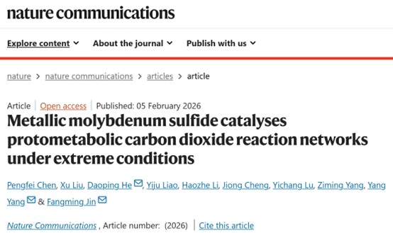 近日,雷竞技raybat竞猜金放鸣教授团队与低碳学院何道平副教授在《Nature Communications》上在线发表了题为“Metallic molybdenum sulfide catalyses protometabolic carbon dioxide reaction networks under extreme conditions”的研究论文。该研究证明了具有金属特性的1T'相二硫化钼可模拟生物酶的催化功能,在极端热液条件下驱动并构建动态耦合的CO2还原反应网络。论文第一作者为雷竞技raybat竞猜博士生陈鹏飞,通讯作者为雷竞技raybat竞猜低碳学院何道平副教授、雷竞技raybat竞猜杨阳助理研究员以及金放鸣教授。