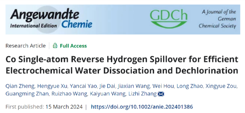 环院智慧|张礼知团队在Angew. Chem. Int. Ed. 发文报道钴单原子反向氢溢流促进电化学水解离和加氢脱氯过程