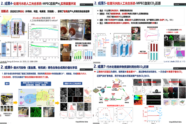 能源化利用和碳捕获及碳增值转化是“双碳”背景下废水处理研究的热点和发展方向。针对目前废水处理行业能耗高、直接和间接碳排放量大的问题,路璐教授及其课题组基于对合成生物学、生物电化学和光电化学的交叉融合,提出多种微生物-材料杂合界面理论及解析界面电子传递机制,构建了不同尺度的反应系统,在处理有机废水过程中回收有机物化学能,并结合其他可再生能源(如太阳能),共同驱动转化CO2、废弃有机碳、重金属等多种污染物为高价值含化合物,实现同步治污和碳减排及碳增值转化。同时在城市尺度,对废水处理工业厂-网-河的碳排放量进行实际监测和核算,在获取的碳排放格局基础上,提出废水处理行业在“双碳”目标约束下的最优资源化路径,从“人工光合作用APS-微生物光电化学MPEC技术处理污水”、“废水重金属有机碳绿色生物合成”、“污泥资源化利用协同CO2还原”、“展望及工程运用前景”等四个方面展开成果分享。