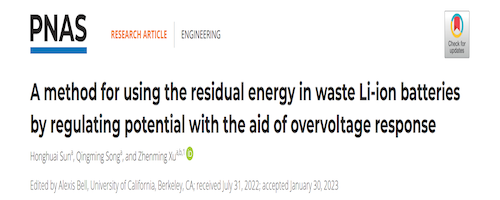 环院智慧|许振明团队PNAS发文探寻利用废旧锂电池中剩余能量