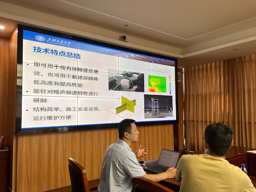 座谈会结束后,蔡俊团队与生态环境部大气司调研团队一行赴杭州湾跨海大桥北接线高速公路翁村段进行了实地调研。在蔡俊老师指导下,翁村段通过采取现有声屏障顶部降噪改造、伸缩缝局部修缮及声屏障边缘延长的综合降噪方案,实施后声屏障提质效果达5~7dB(A),敏感点夜间环境声压级由58~60dB(A)降低至50~51dB(A)。经闭环验收,该项目改造效果得到了参会的市、区、镇和村代表及与会专家的一致肯定,中央环保督察项目的噪声污染问题投诉也得以最终撤案。调研团队对通过技术创新开展交通噪声治理的做法表示赞赏,鼓励相关单位做好典型案例挖掘,进一步推广经验做法。目前该声屏障提质增效技术将陆续在北京、宁波和湖州等地的交通噪声治理和声屏障改造项目中使用。