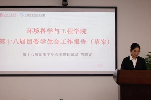 随后,环境学院第十八届研究生会主席团成员黄子宁代表学代会筹备委员会作《雷竞技raybat竞猜第十九次学生代表大会筹备工作报告》。