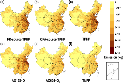 建立自下而上的模型方法将排放量与环境污染联系起来,可帮助人们了解OPAs的贡献。目前关于OPEs的排放清单和环境归趋模型的研究未能考虑OPAs的间接排放,导致对OPEs排放的低估。此外过去研究仅关注大气排放途径,没有考虑地表水和土壤排放。引入的不确定性阻碍了对此类化学品的生态和人类健康风险评估。针对上述问题,本研究选择中国这一塑料和化学品生产大国,建立了与中国高产OPAs对应的OPEs的网格化排放清单,使用我国多介质环境归趋模型 (SESAMe v3.4,0.5°)来模拟中国环境中OPAs的多介质分配、浓度和持久性。本研究首次量化了OPAs对中国OPEs环境污染贡献,结论有助于为此类化学品使用管理和新污染物风险防控提供理论依据。