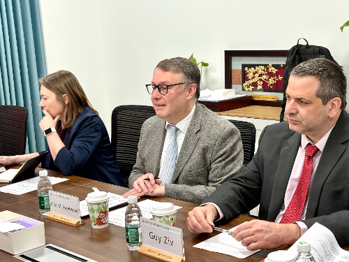 耿涌详细介绍了学院近年来的科研成果、国际合作情况与未来发展规划。刘萍具体介绍了“3+1本硕双学位项目协议”的实施情况,Prof. Guy Ziv介绍了未来合作拓展及规划设想,双方就开展联合博士培养项目、国际暑期学校等议题进一步达成共识,并对项目结构优化调整,持续推进后续协议签订展开讨论。