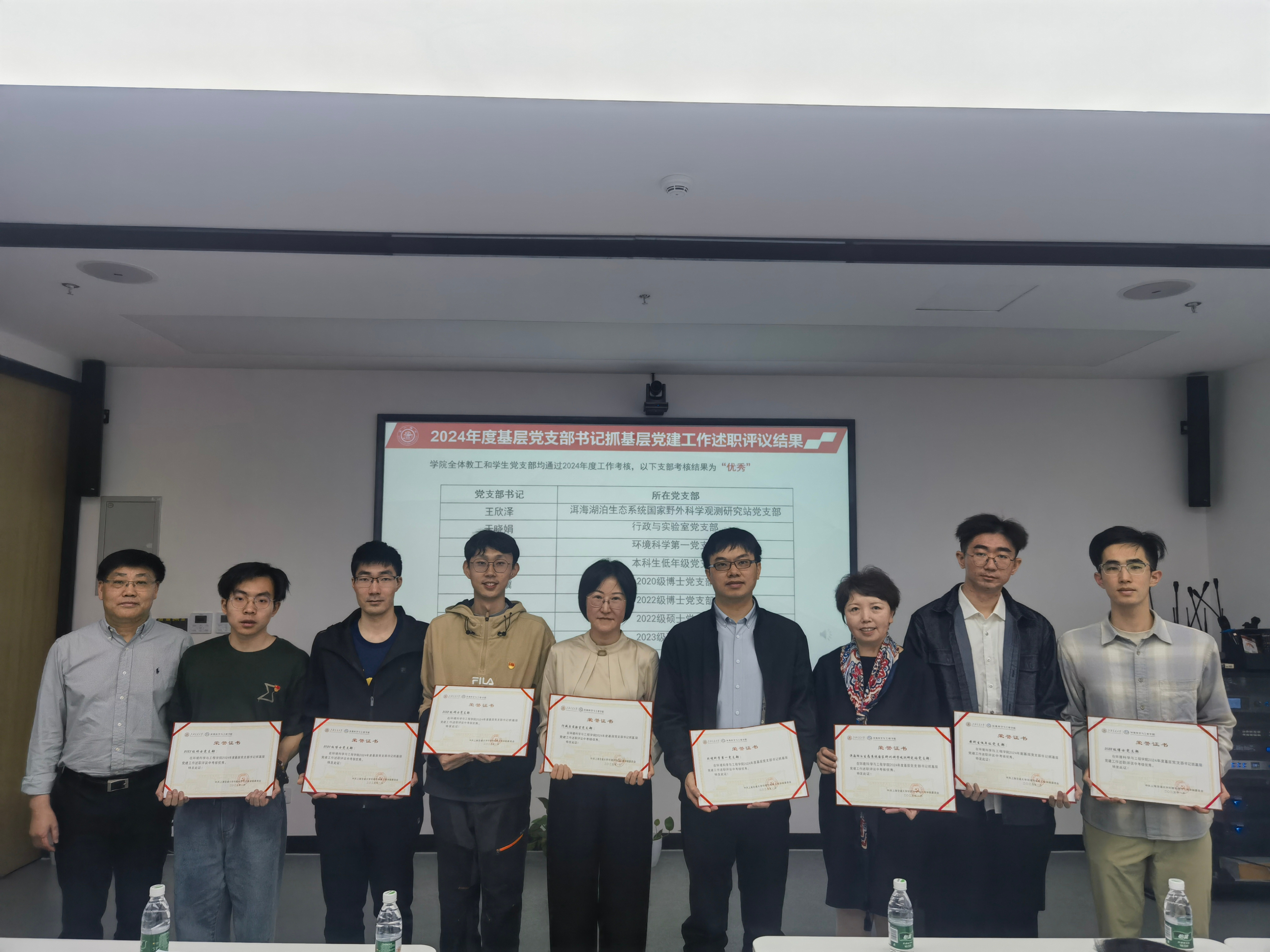 曹心德为环境学院2024年度基层党支部书记抓基层党建工作述职评议考核优秀的各支部书记颁发荣誉证书,以表彰各位同志的辛苦付出和取得的显著成果。