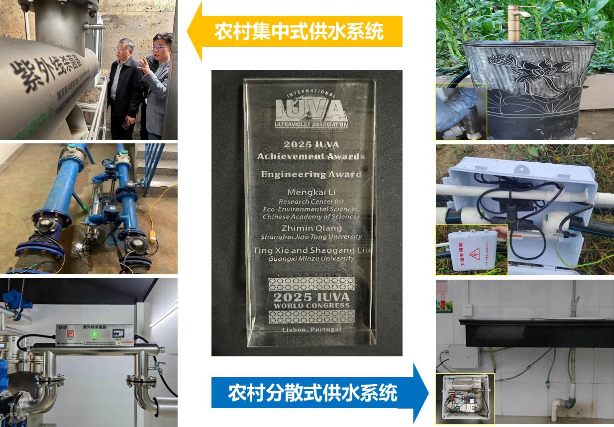该奖项授予两年间国际紫外线领域最具影响力的工程实践。依托强志民教授主持的国家重点研发项目“村镇饮用水水质提升关键技术研究与装备开发”,团队(包括中国科学院生态环境研究中心李梦凯研究员和广西民族大学刘绍刚教授、谢婷副教授)研发适用于农村多种实际场景(乡镇水厂、二次泵站、村屯水柜和龙头端)的高性能紫外消毒设备,大幅提升了农村饮用水安全。评审委员会指出,该项目紧扣中国西南喀斯特地区农村饮用水需求,创新研制了农村集中式供水系统多参数(包括剂量)实时在线监测紫外消毒设备以及农村分散式供水系统输水管线沿程和末端快速启动式紫外消毒设备,已在广西多个农村地区实现长期稳定供水,并推广至浙江、江苏、甘肃等地,开创了农村饮用水安全消毒新格局。