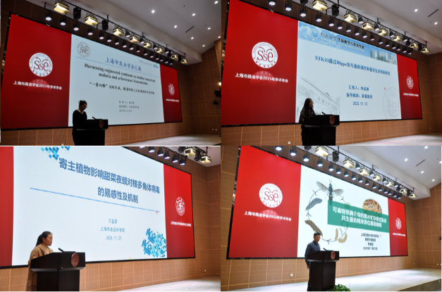 大会主旨报告由中国科学院植物分子卓越创新中心詹帅研究员主持。苏州大学张勇教授、中国科学院植物分子卓越创新中心蒋兴聪研究员、华东理工大学万年峰教授、复旦大学杨烁研究员围绕生物节律、种群动态、生物多样性控害、昆虫病毒传播等前沿领域依次作报告。