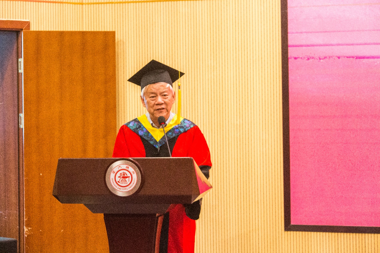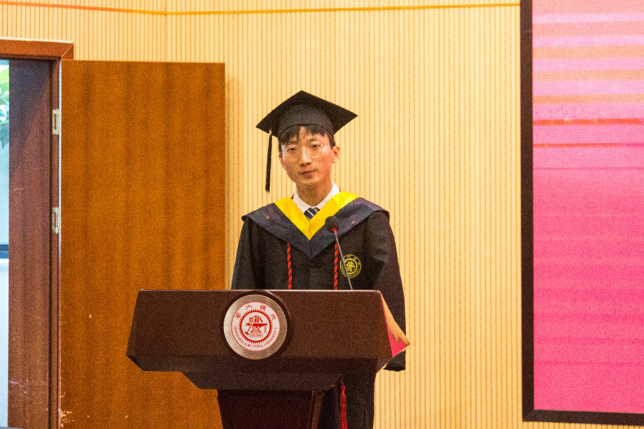 学位授予仪式在庄严的国歌声中拉开序幕。党委书记胡薇薇以《祖国需要,我的责任》为主题代表学院致辞。胡薇薇讲到,在这场抗击疫情的严峻斗争中,同学们经受了磨练,但也收获了成长。关于如何应对变化挑战?如何走好未来之路?胡老师对同学们提出了几点希望。第一,永葆家国情怀。体现交大环境人的责任与担当。第二,学会登高望远。用发展的眼光看问题,争取十年磨一剑的大作为。第三,保持永远学习的态度。在信息社会,要善于管理自己的时间资源和个人资源,勤修内功,积蓄能量、厚积薄发!