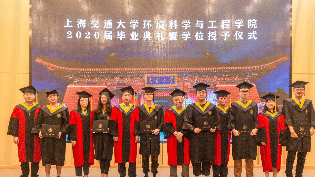在拍照环节,由于疫情原因,参加拍照的只有部分硕士博士毕业生和大部分本科毕业生。首先由学生代表俞枫介绍了2020届环境学院毕业生去向分布。60位本科毕业生中,三分之二的同学选择包括斯坦福、耶鲁、英国帝国理工、苏黎世联邦理工、新加坡国立、北大、清华、上海交大等国内外高校继续深造,立志在学术上追求卓越;有三分之一的同学选择就业,韦彦岑同学即将参军入伍,其他同学选择进入环保相关领域工作。61位硕士毕业生中,有近10位同学选择了选调生和去基层服务,其中4位同学进入了生态环境部和自然资源部中央选调生的面试环节,8位同学前往国内外高校继续读博。11位博士毕业生中,4位同学选择留校和高校任教,一位同学入选陕西省选调生,一位同学赴山东省科技厅工作,其余几位同学全部就职环保相关领域。