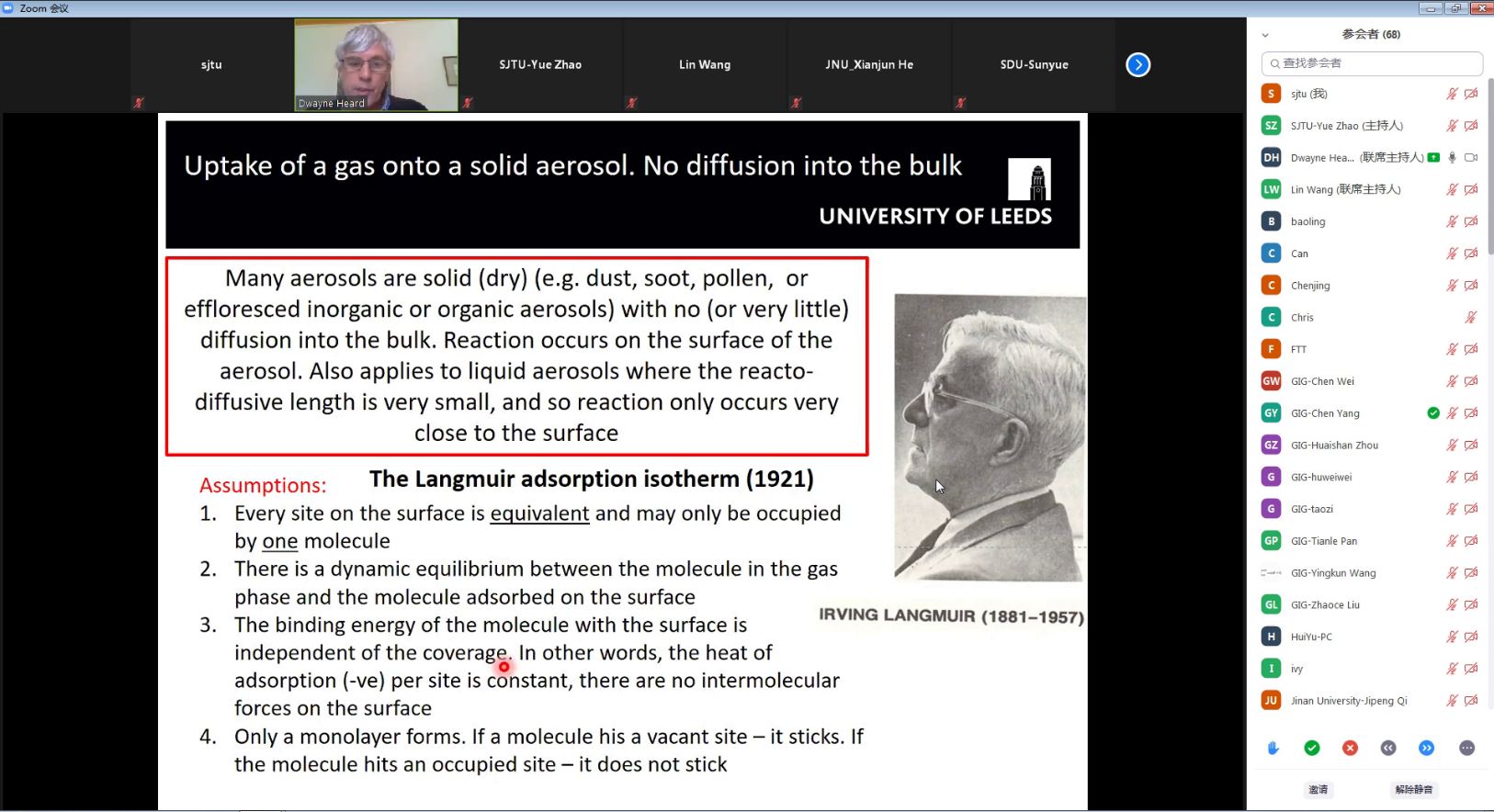 暑期学校期间,来自复旦大学、利兹大学、北京大学、南京大学、雷竞技raybat竞猜的王琳教授、Dwayne Heard教授、陆克定研究员等共13位教师分别就自己的研究领域进行了授课,内容涉及大气新粒子形成,大气气溶胶的非均相化学和多相化学,氮氧化物化学,大气中的自由基化学,机器学习对大气化学模型的推进,以及我国的环境-经济-健康模型等各个方面。在各位老师报告之后,同学们也分别就自己感兴趣的内容积极发言提问,课堂讨论氛围浓厚。