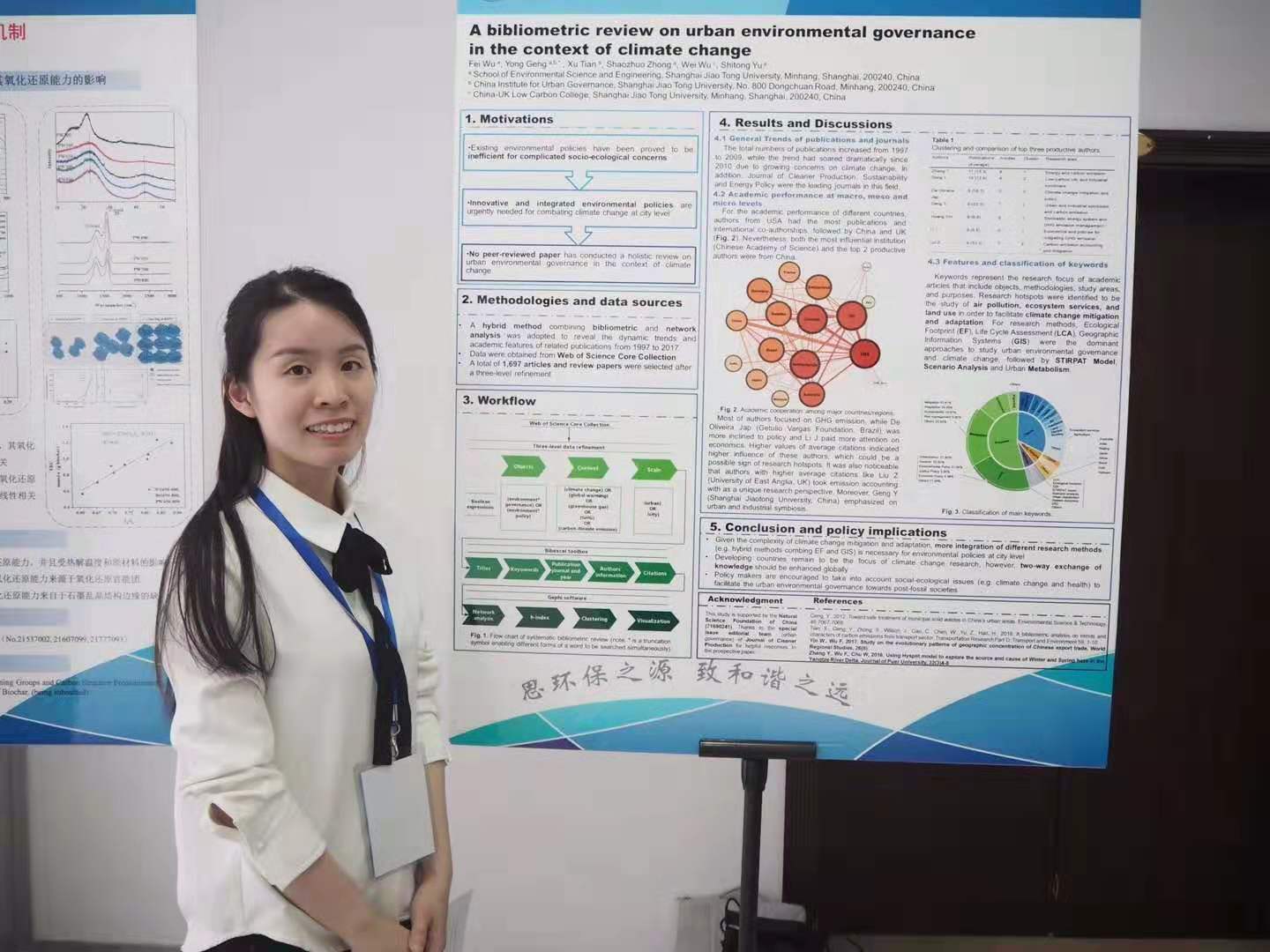 首先,地理学本科出身的我,在环境工程学的硕士项目中,做着环境经济与管理学的研究。正是这理、工、文学科的交叉融合,塑造了我独特的研究生学习和科研生活。入学以来,除了在环境学院开设的专业课中获得优良的成绩,我也积极选修了安泰经济与管理学院和国际事务与公共政策学院的相关课程。虽然往返徐汇与闵行校区两地的路程遥远又辛苦,但我非常享受和经济、公共政策老师的跨学科交流,在这两门全英文课程中分别获得A与A+的好成绩。此外,我的科研成果也非常丰富。截至2020年2月,我在研究生不到三年的时间内一共参与发表了七篇同行评审的文章。其中,第一作者的SCI文章两篇(发表于Journal of Clean Production,中科院一区)、第二作者(本科导师一作)的中文核心文章一篇。