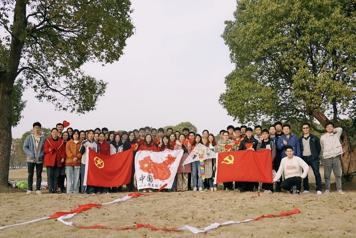 2021年3月13日,恰逢中国共产党成立100周年纪念日来临之际,以“喜迎建党百年,放飞青春梦想”为主题,19级硕士生党支部、B1916091团支部和B1916092团支部在电院大草坪共同举办了党团共建活动。