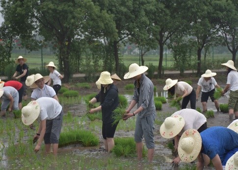 为了感受劳动人民拓荒经营与辛勤劳作的精神,党员们来到田间进行插秧体验。在专业人员的理论讲解和操作示范后,大家纷纷卷起裤管,挽上衣袖,从生疏到熟练,从歪斜到整齐,在众人的努力之下,大片水田很快插满绿油油的秧苗。活动中,师生党员与村民们共同劳作,增长了知识,丰富了体验,更深切体会到粮食的来之不易。