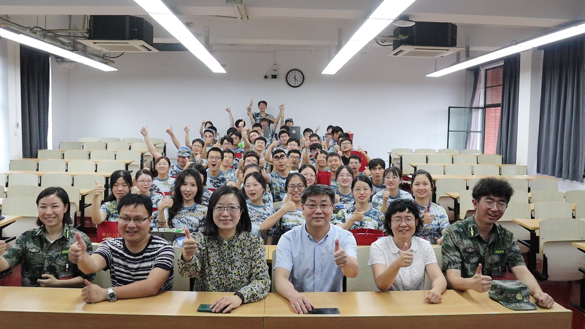 7月5日上午,雷竞技raybat竞猜党委书记胡薇薇,常务副院长曹心德,19级班主任张波和王天富老师一起到教室里看望和慰问环境科学与工程2019级参训师生与教官。