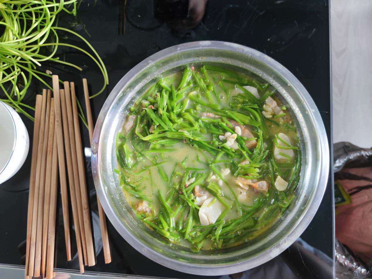 第二现场海菜花芋头汤的制作