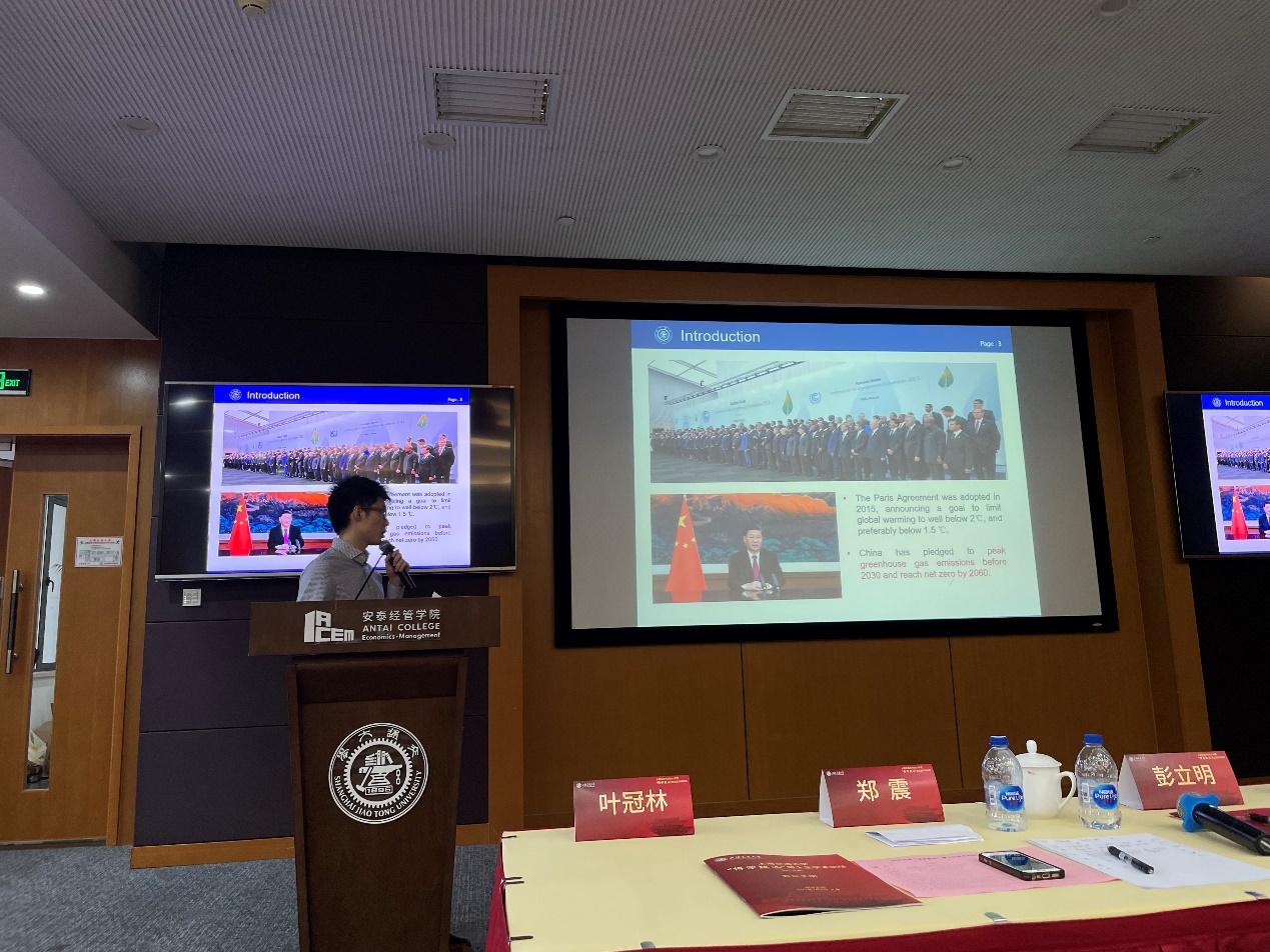 2017级致远荣誉计划博士生于仲觉,由环境学院耿涌教授和英国伦敦大学学院可持续资源研究所Raimund Bleischwitz教授共同执导,主要从事中国多区域动态一般均衡模型的开发,以及基于一般均衡模型的中国碳排放交易与空气污染协同效益研究。目前以第一作者在Journal of Cleaner Production,Climate Policy等国际期刊发表论文2篇,于2020年2至2021年5月赴伦敦大学学院参加联合培养。他的论坛报告题为“China’s unconventional carbon emissions trading market: the impact of a rate-based cap in the power generation sector”,开发了中国多区域动态一般均衡模型,模拟了现有基准线设定下中国2020至2030年可能的减排路径,对比了基准线法和传统的总量控制在减排和经济效率上的差异,评估了碳市场对区域电力系统转型的作用:即基准线法相比传统的总量控制的经济效率更低,但在提高电力行业能源效率方面有更显著的作用;碳市场初期有限的覆盖范围可能不利于电气化和可再生能源的发展。研究同时识别了碳市场政策下可能受到经济损失较大且较不发达的区域,为碳市场可能面临的风险做出警示。