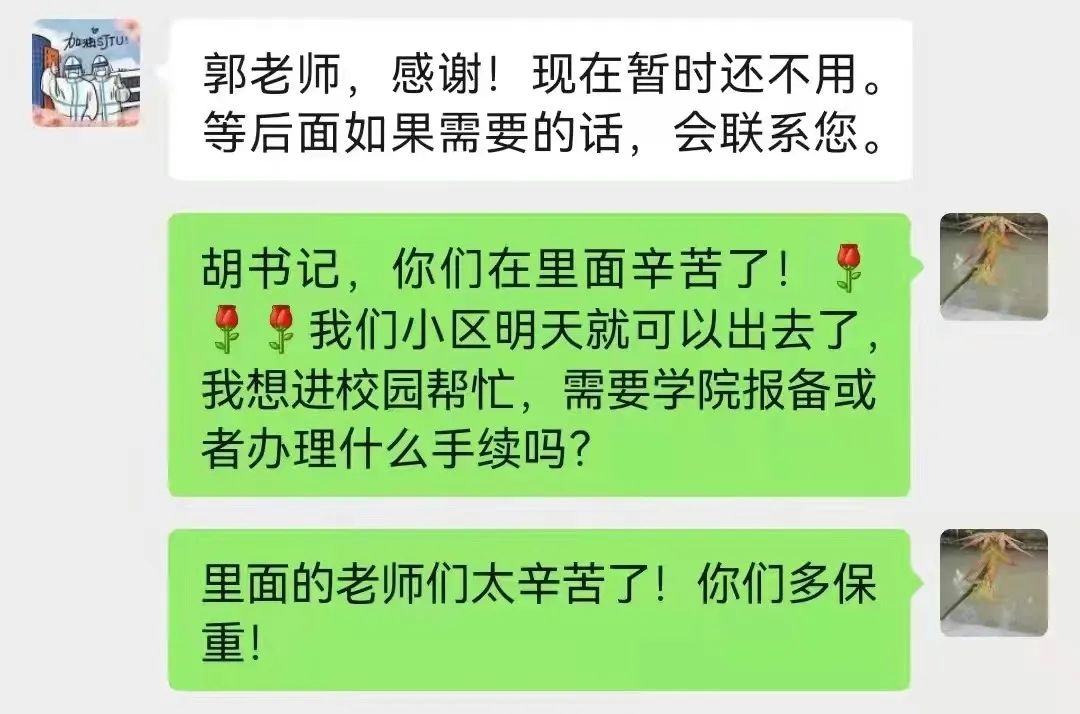 自学校闭环管理第一天起,学院党委领导胡薇薇、张洋等主动扛起政治责任,纷纷入校积极投身到疫情防控战斗中,另有多名思政老师、辅导员、党员骨干等也多次主动请战至一线参与工作。按照《雷竞技raybat竞猜疫情防控应急预案》,学院第一时间成立工作专班、建立封控管理响应和信息统计机制,召开党政联席会(扩大)专题会议,研究部署疫情防控重点工作。学院工会结对帮扶,为抗疫教工解后顾之忧。