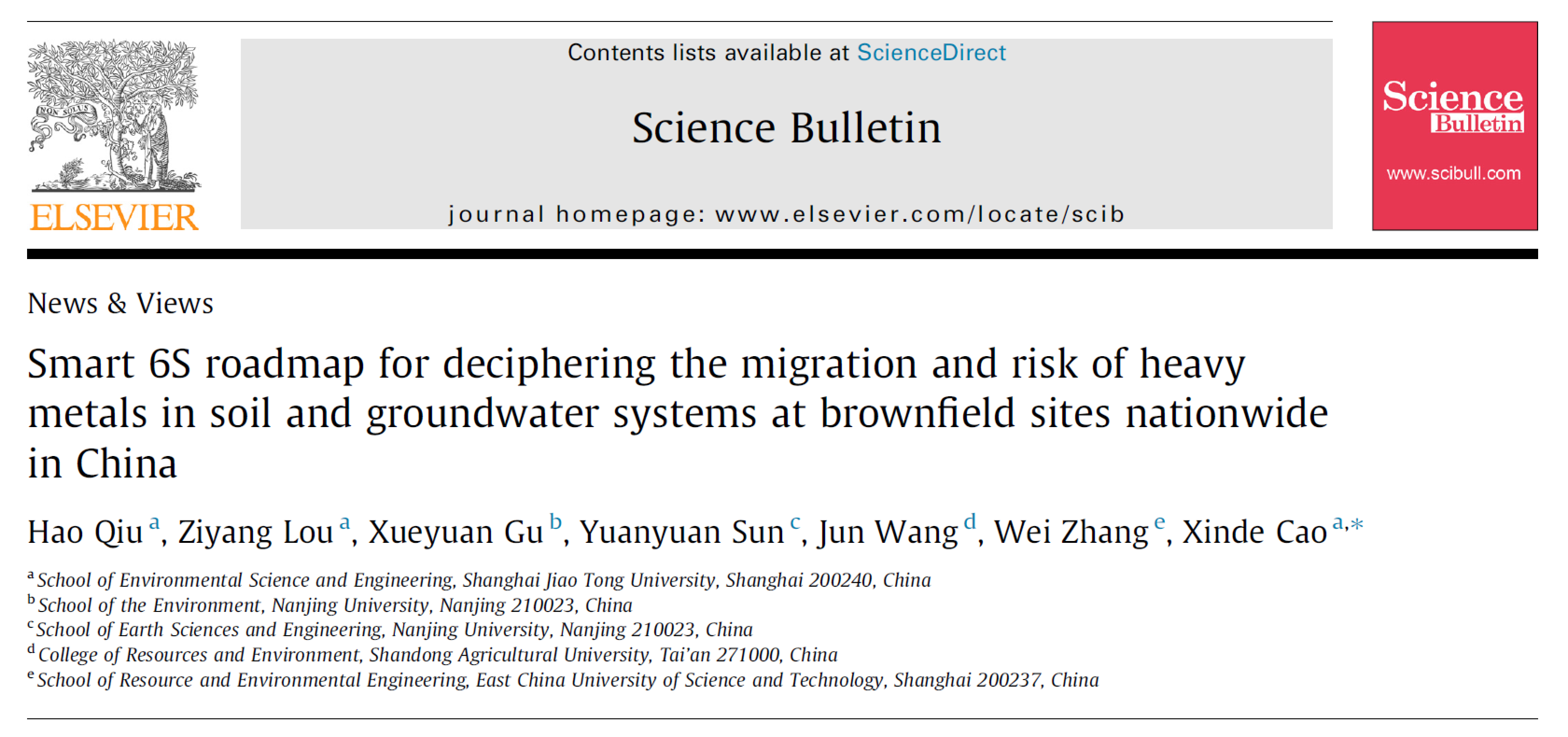 环境学院土壤地下水团队在自然科学综合性期刊SCIENCE BULLETIN撰文解译土壤-地下水系统中重金属迁移潜势与风险